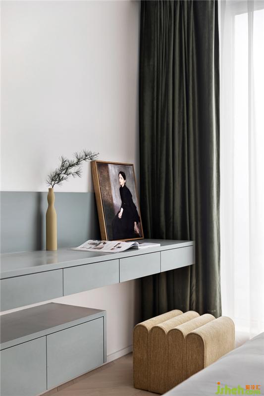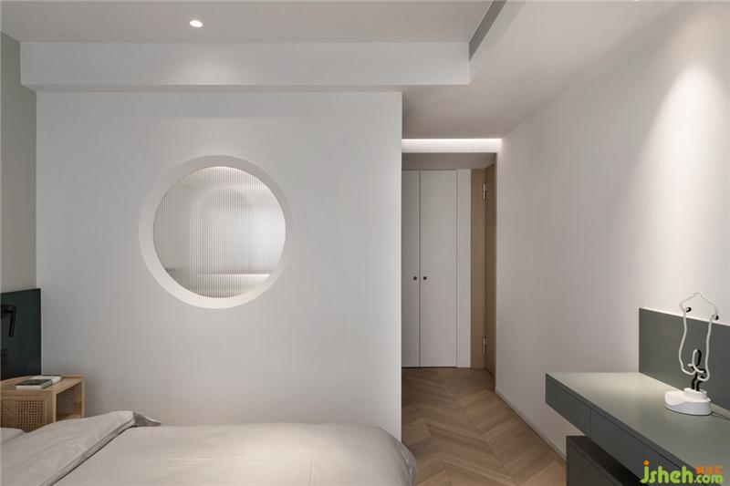 与主卫的隔墙处设计圆形长虹窗户,打破单调性,增加空间神秘感。