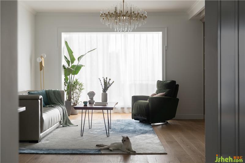 本案小区自带恒温、恒湿、恒氧的系统功能,设计师为了让环境与人亲密接触、息息相关,将原有的阳台纳入客厅,使客厅更加通透明亮。