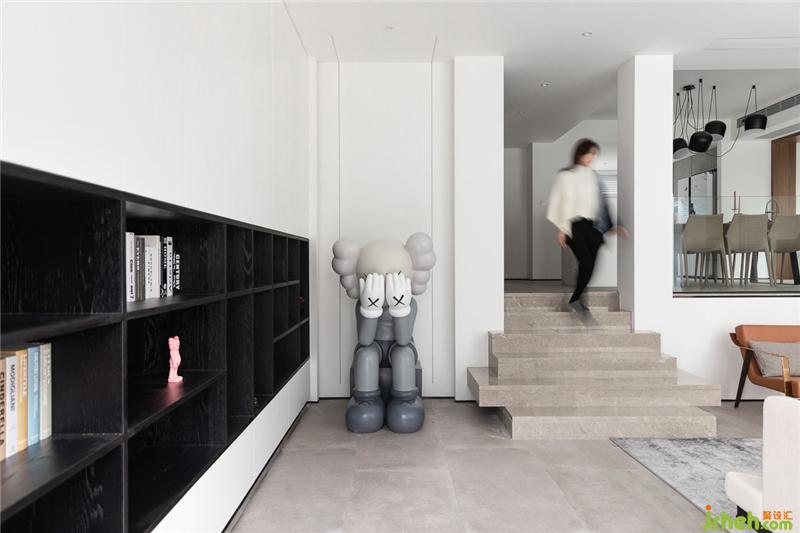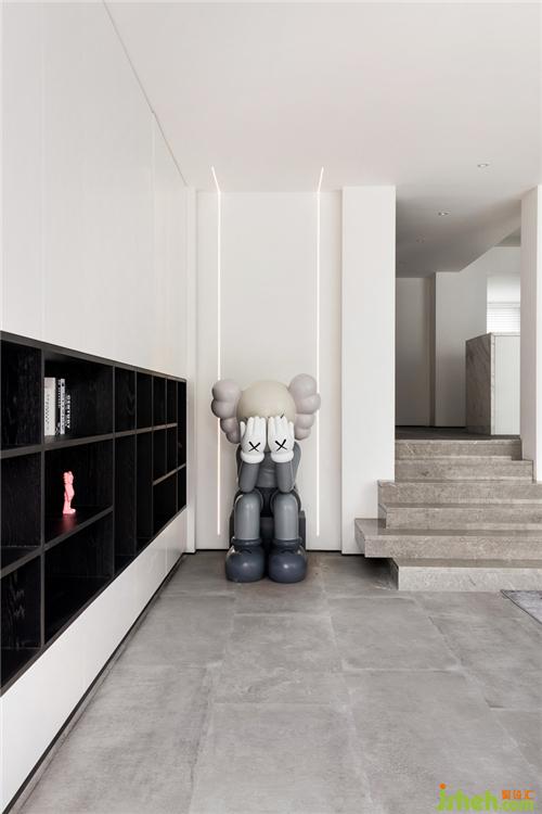 玄关立面和顶面的线条杭州别墅装饰设计,采用同一材质同一元素达到视觉延伸效果。