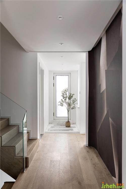 立体感壁画,打破单调性;远处地面做了青石板汀步,打破常规性;杭州别墅装饰尽头加入绿植,增强视觉感官效果。