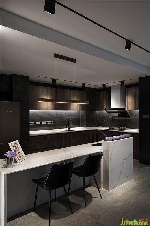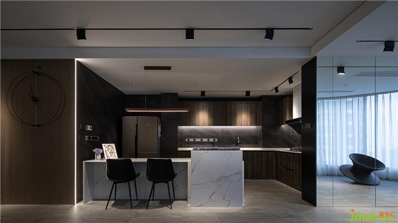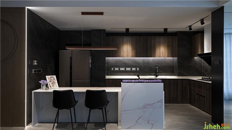 The original structure of the kitchen is relatively small, and the optimized open kitchen is integrated with the living room and dining room to create a larger visual space.