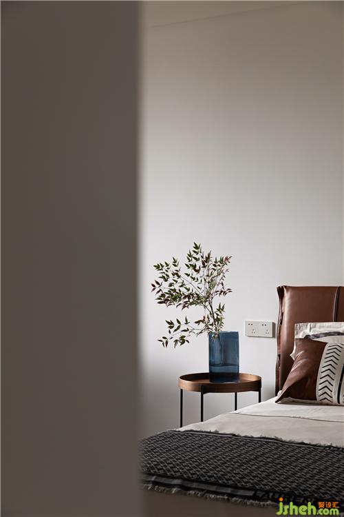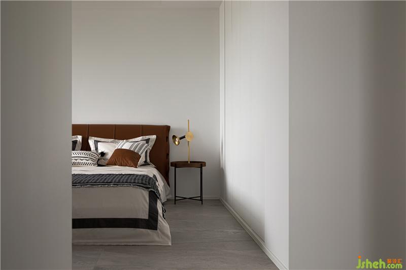 整个主卧空间将休憩区、衣帽间、干湿区和卫浴结合,让动线和功能区相互融合。