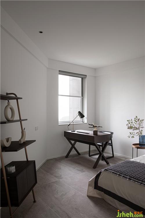 The study room and the bathtub are separated by a "line", separated by glass, which connects all the functional rooms of the master bedroom in series to increase the visual space.