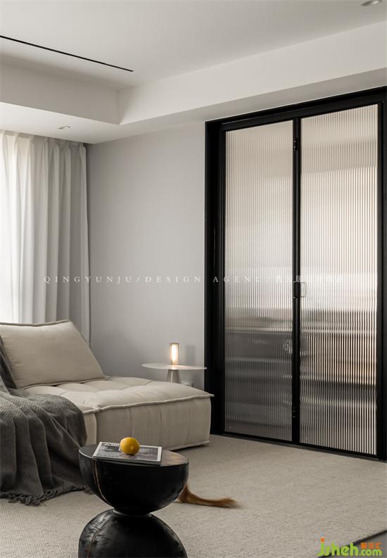 客厅和书房之间,增加玻璃折叠门,同时保证了书房的私密性。