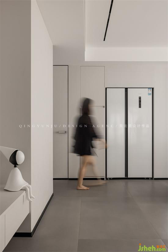 The original rooms are relatively closed and isolated from each other, like small boxes, with no interaction; the designer opened up the study and connected the balcony and living room to each other. The north and south are transparent and the light is very good.