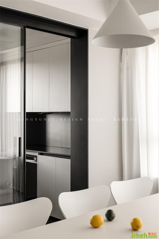 厨房是半敞开形式,我们烹饪的时候既可以避免油烟,又避免室内设计师猫咪跑进去。
