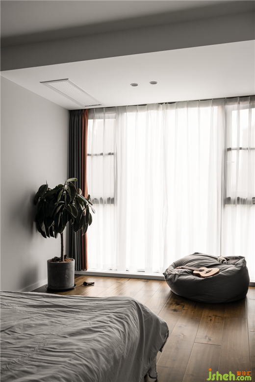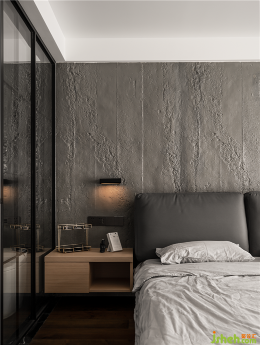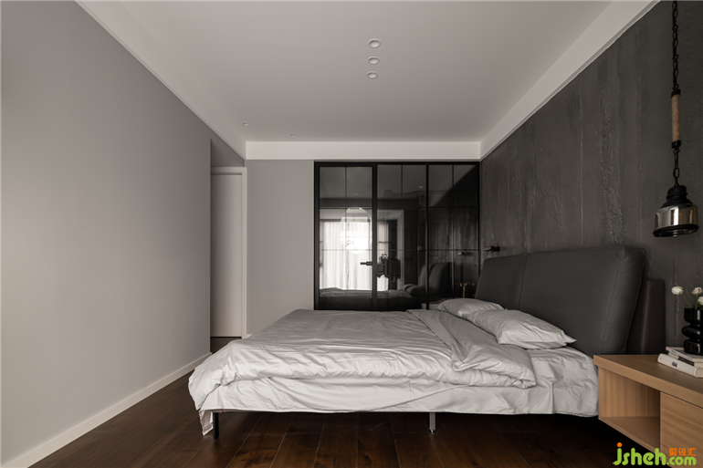杭州家居装饰卧室内采用玻璃和水泥板加上原木材质,在空间中随着明暗的变化,随心随性的自在生活,高级又温暖。