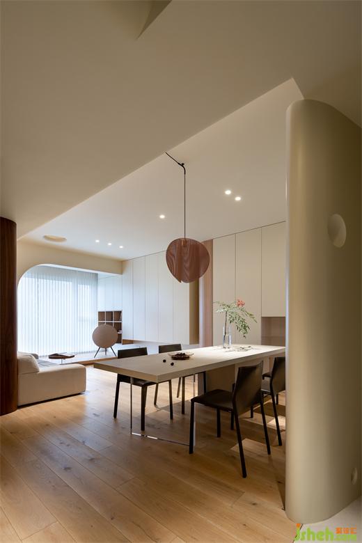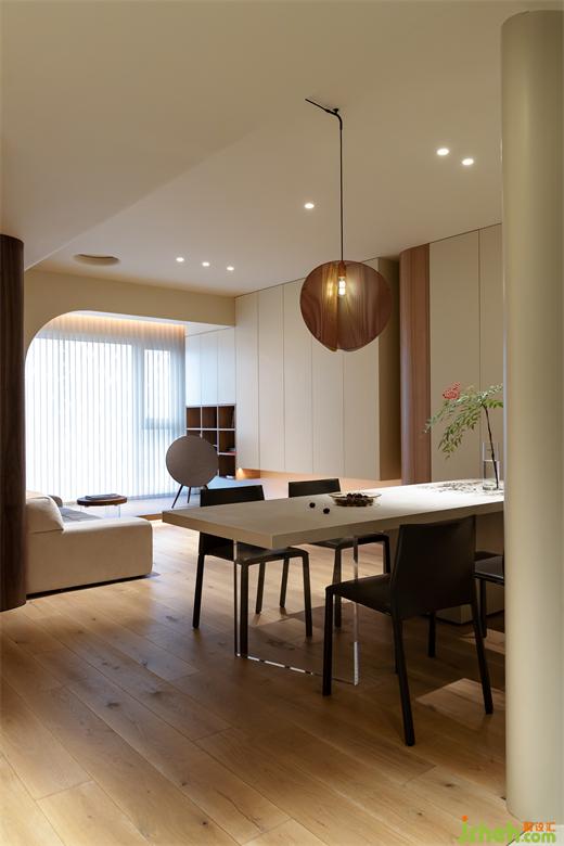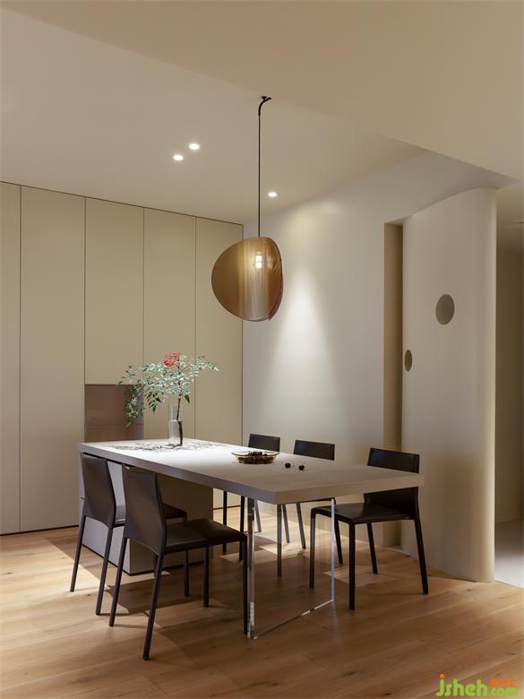 搭配简约圆形吊灯,光线柔和温馨,放慢用餐的时间,静享生活慢时光