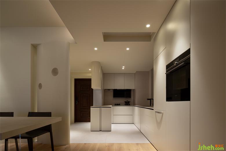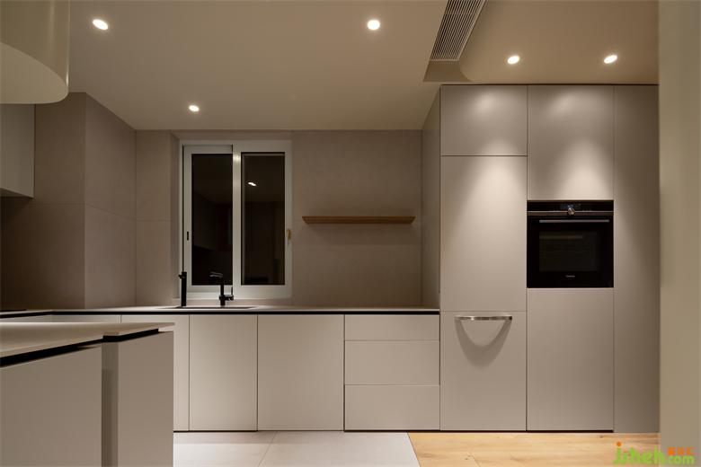 厨房设计成U形,迂回的路线将操作台分配一目了然,避免手忙脚乱,增加了烹饪的轻松和趣味感。嵌入式蒸烤箱和冰箱,杭州水岸枫庭家装设计既满足功能需求,又使整体非常统一,互不干扰。