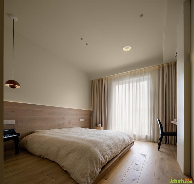 考虑到业主家的宝宝很小,需要家长陪睡,所以将悬浮床依靠着墙体设计,宽度适合可以放一张小床,非常人性化。