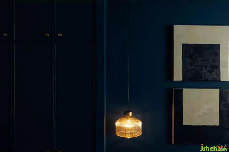 入户在收纳上做足了功夫,蓝色收纳柜嵌入在蓝色墙壁中,兼具美观和实用性。