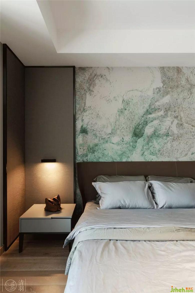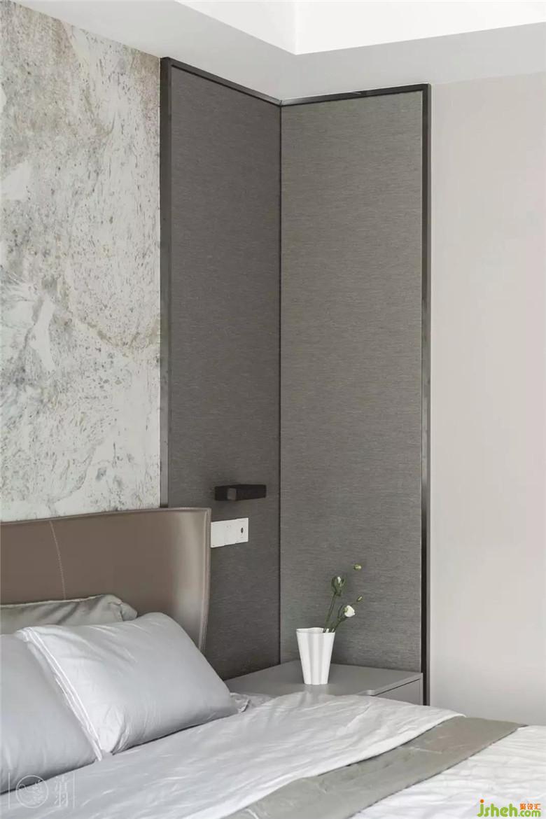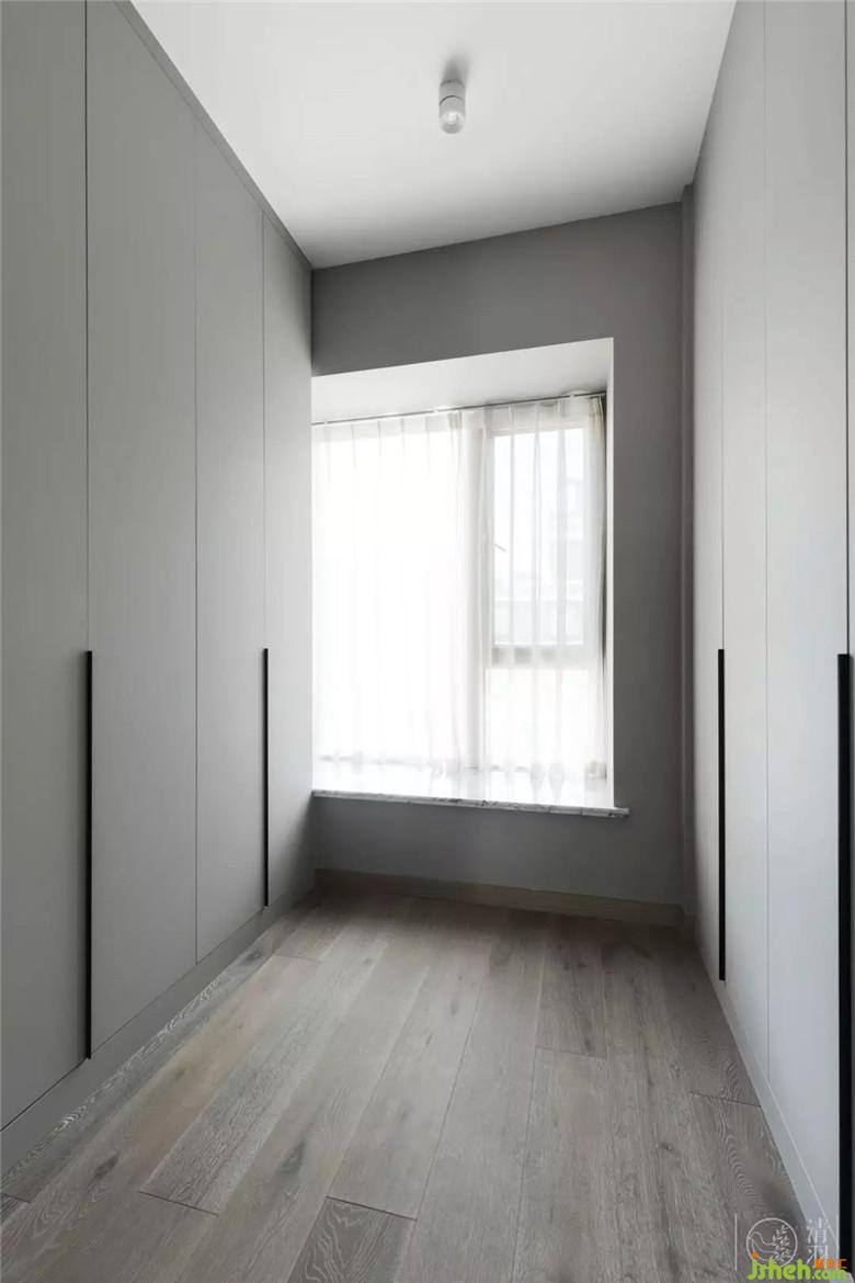 主卧室里的一个亮点在于设置了超多收纳空间,完全可以满足任何一个女人的梦想,衣帽间之外,飘窗下做了收纳柜,并且转角的弧度和大大的窗户形成了最浪漫闲适的角落。