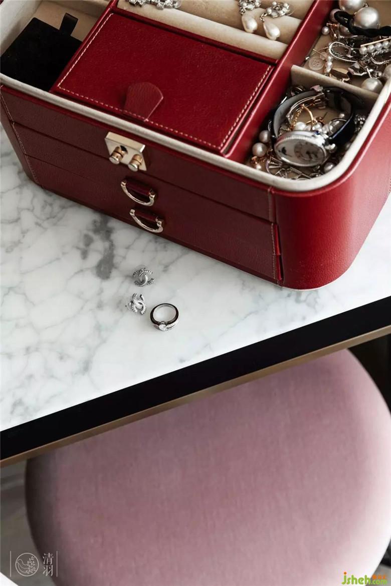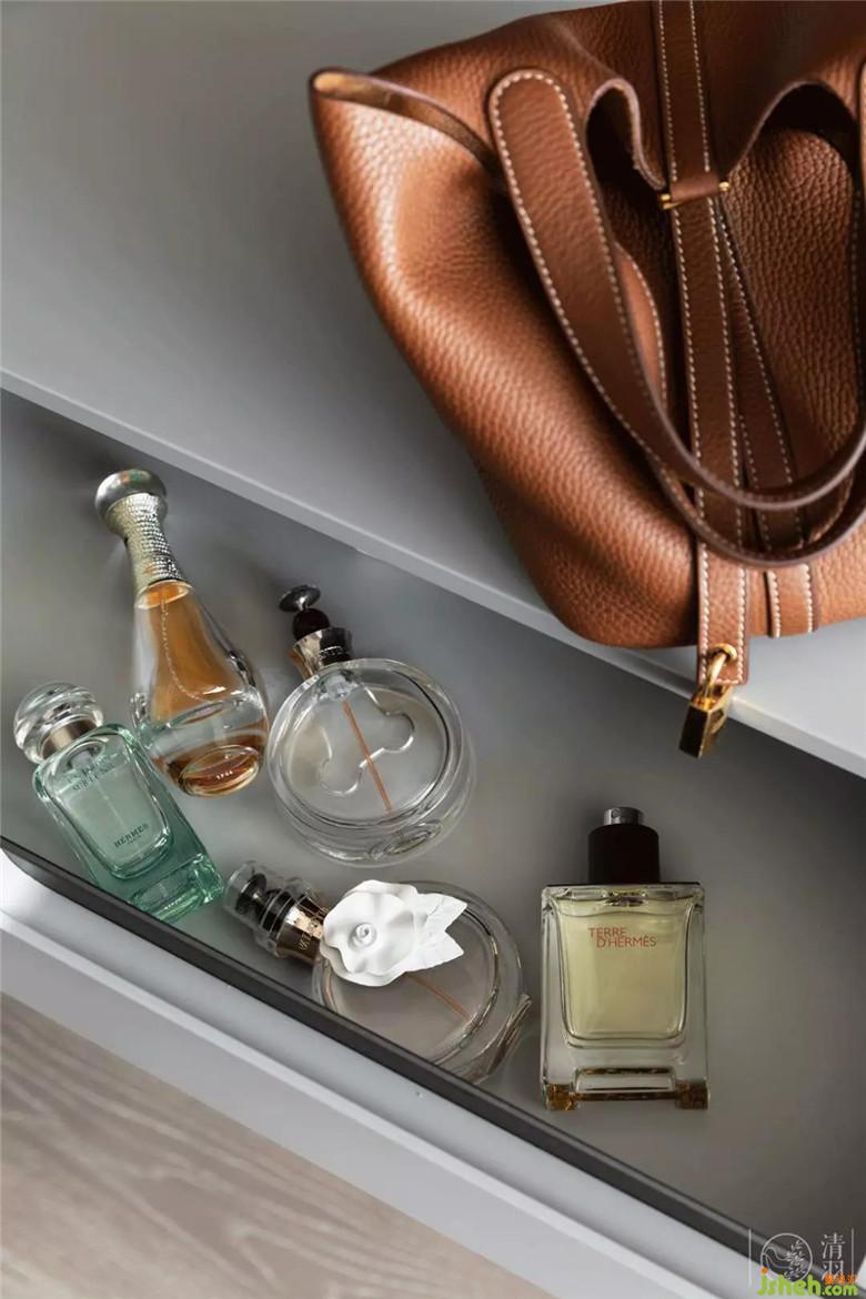 梳妆台的各种收纳也考虑到位,首饰、香水、护肤品……宠爱自己的时刻最应该被尊重。