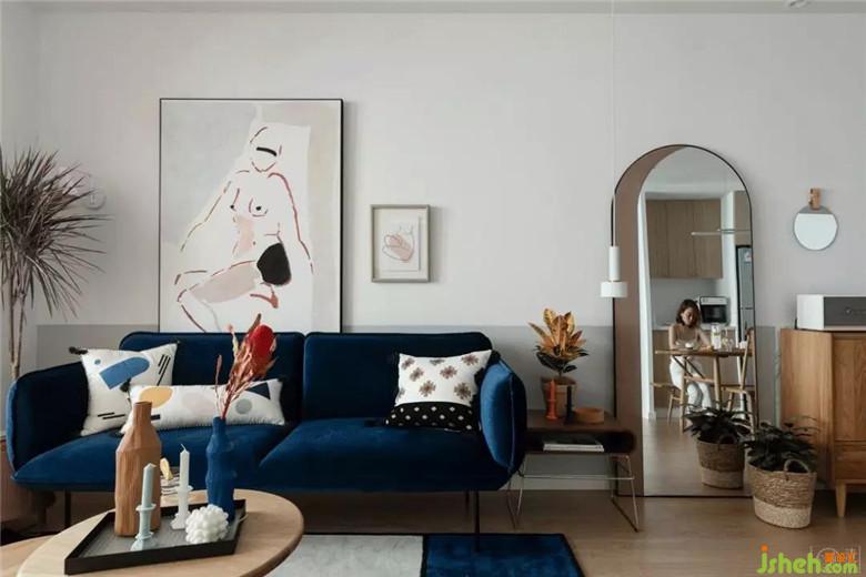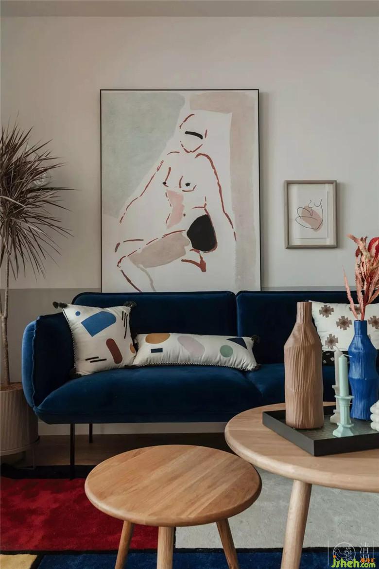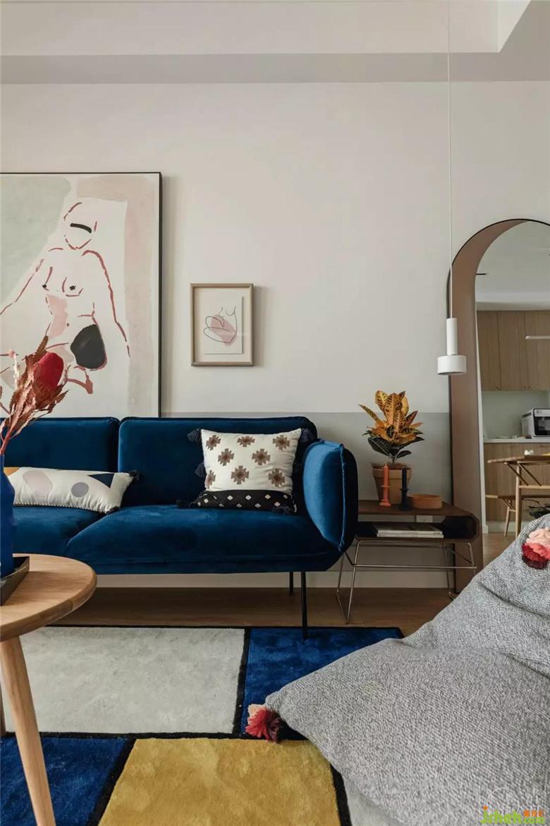 相较于进门后前面几个空间色调的温润统一,客厅,加入了女主人喜欢的几个颜色,作为点缀,也给整个空间找一个视觉上的落脚点。