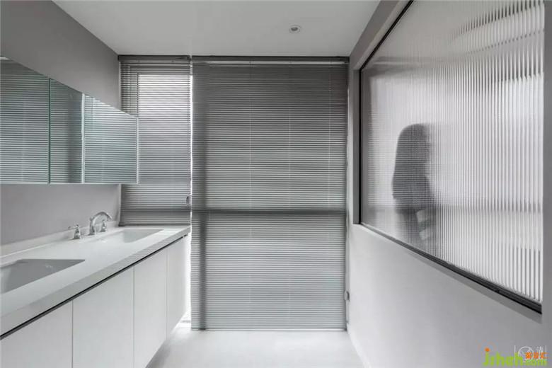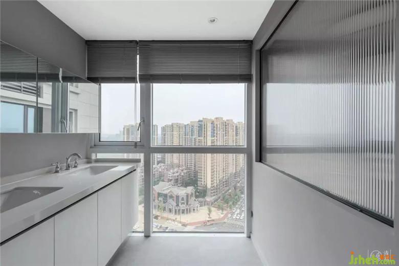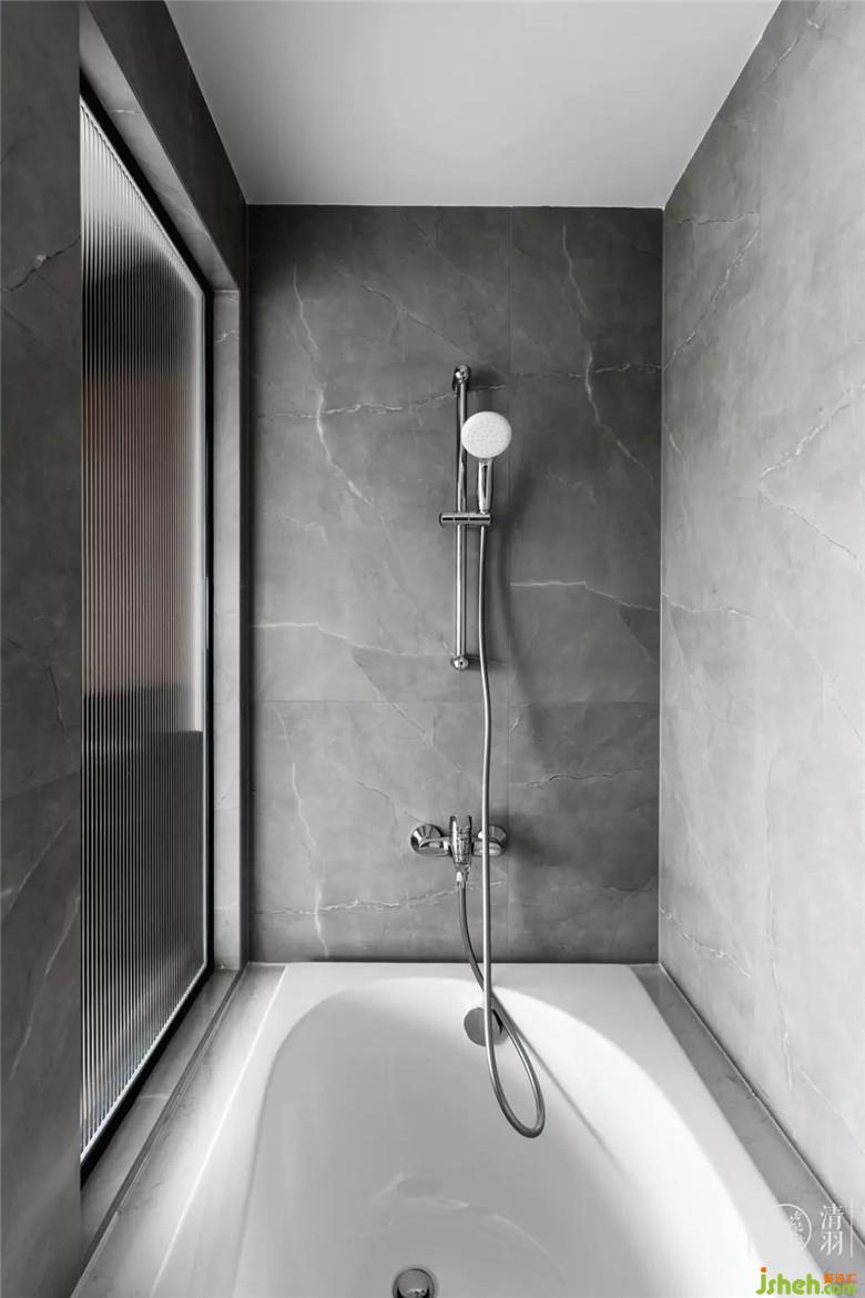 浴缸原本是想放置在靠窗的位置,后来出于安全考虑移到了内侧,和洗漱台平行,中间用长虹玻璃做了隔断,保证隐私性的前提下最大限度采光。