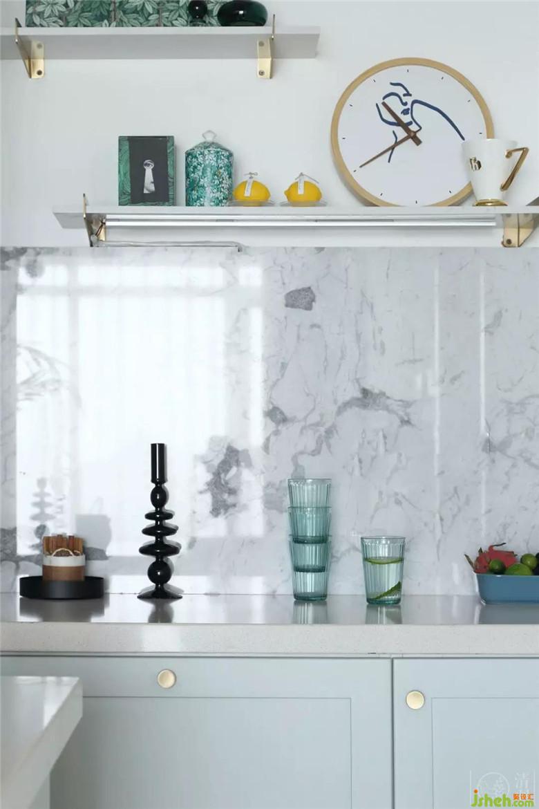 取消了繁冗的挡水,使用了整面大理石上墙,让空间的细节变得更精致。