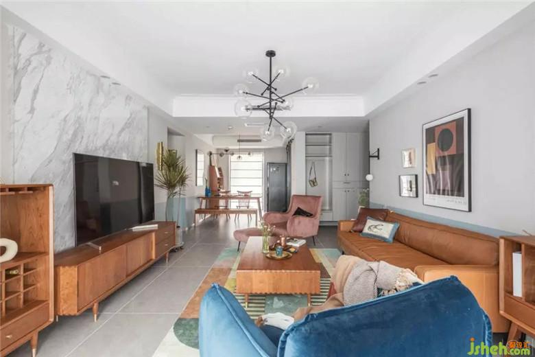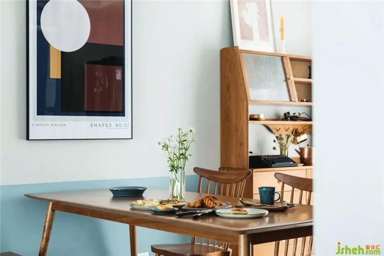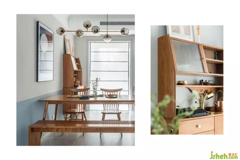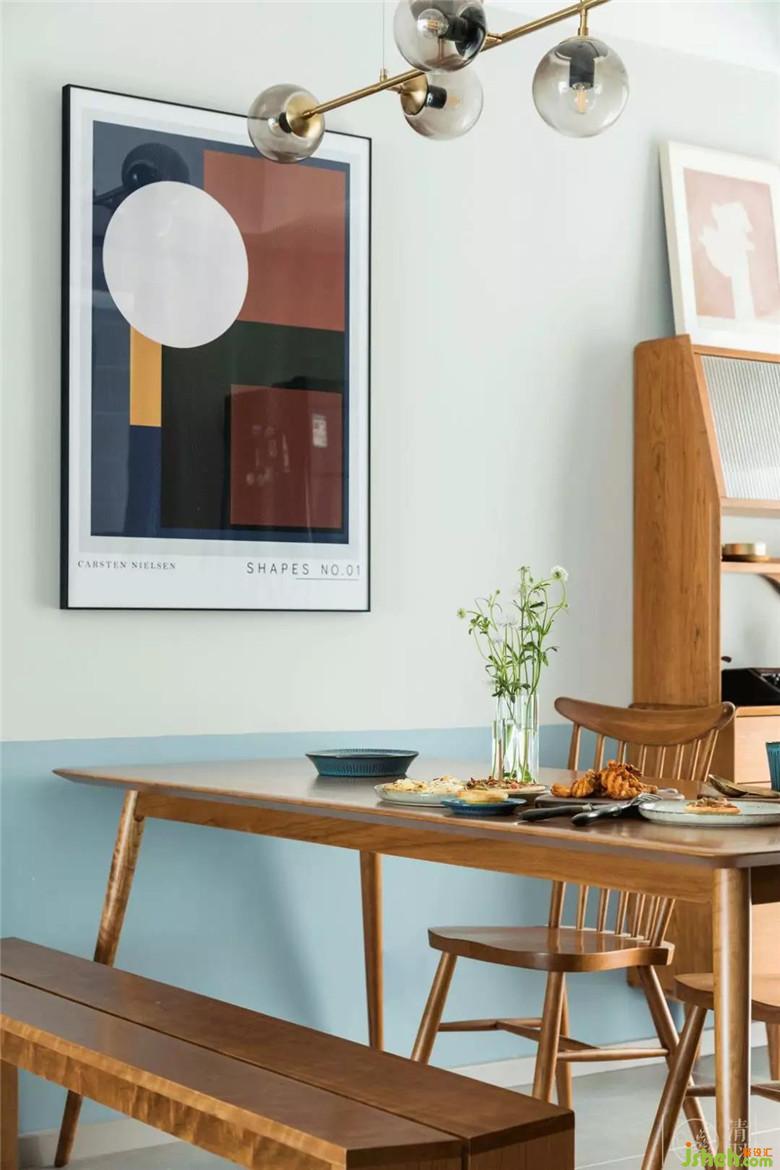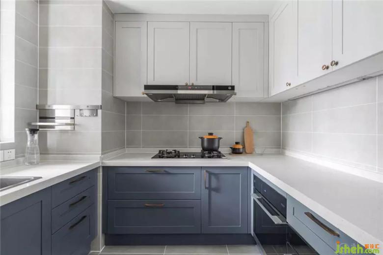 到顶的吊柜,免去了打扫卫生的忧愁。地柜和吊柜的分色处理,真的看上去克制又有趣。