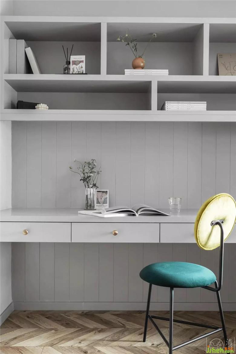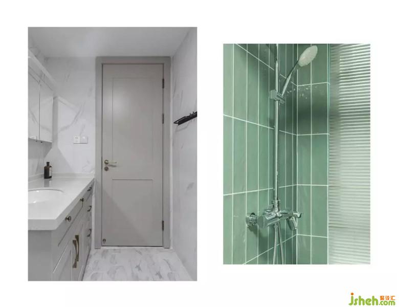 干净的鱼肚白配上灰绿色的小砖,整个次卫清爽干净。