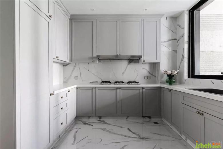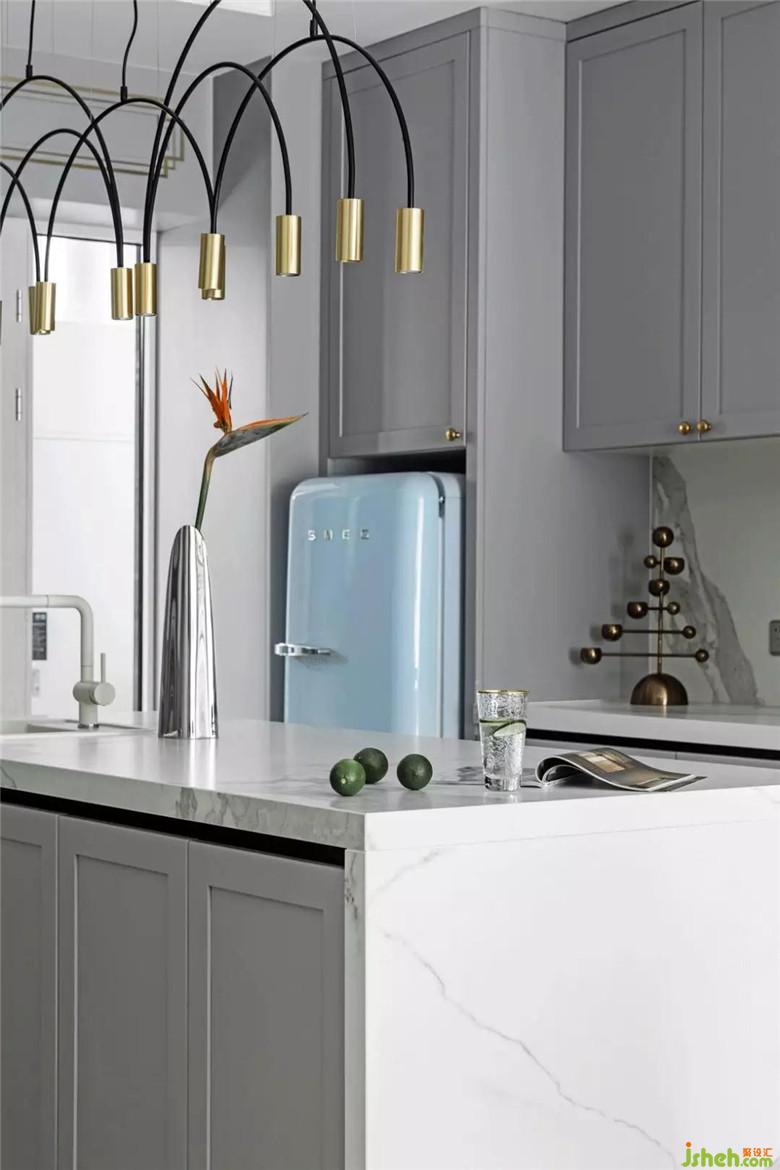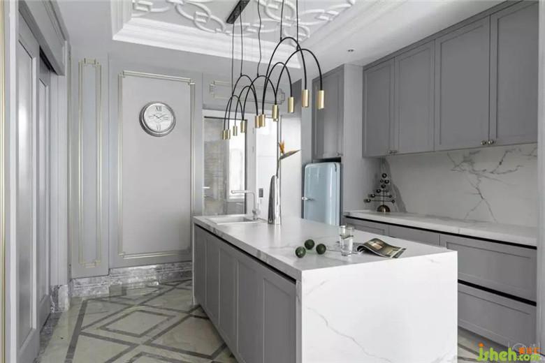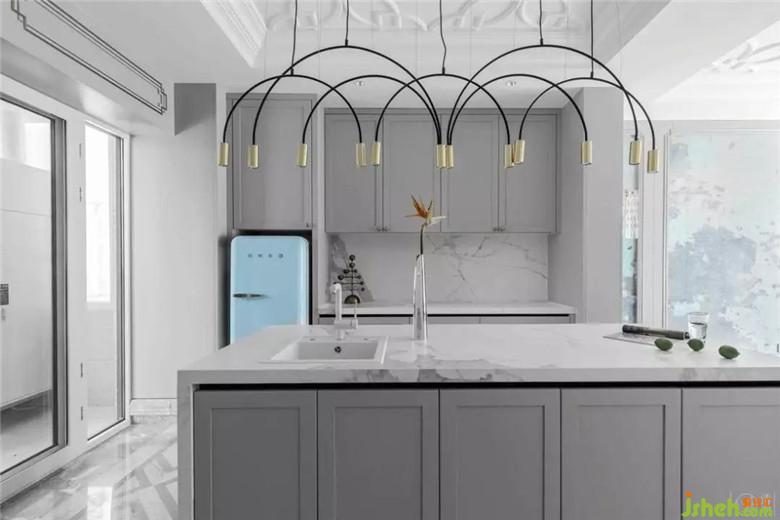 厨房是每一个家庭,最有烟火气的地方,换句话说它也是最可能会打破高级感的地方。那么,台面材质、易打理程度、色彩的选择搭配,空间动线、灯光的照明重点、收纳空间的规划就显得非常重要。