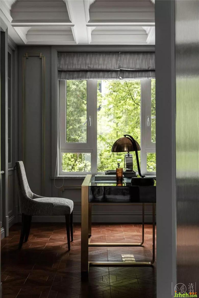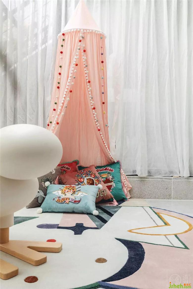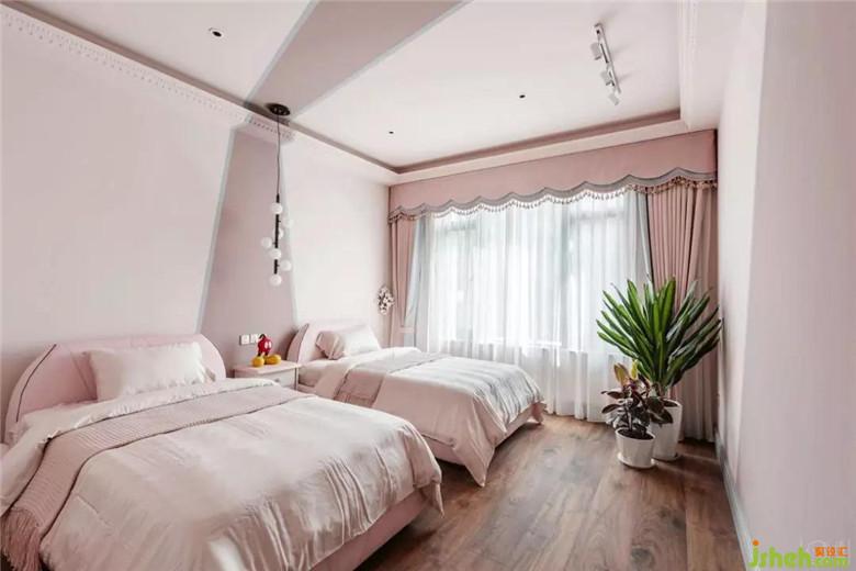 女儿房,可以说是整栋别墅里最跳脱的空间了。小女孩的世界,怎么能没有粉色?何况,饱和度不高的粉色和灰蓝色、淡金色不也是很舒服的搭配么。