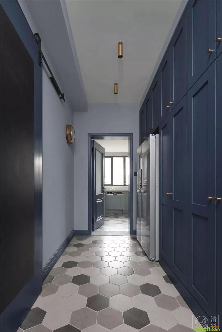 用灰蓝作为这套房子的主色调,是因为我们想为S一家带来舒缓而优雅的氛围,就像港湾中平静的海面。任凭我们走多远, 扬帆归来,可以放下疲惫,悠然的停靠在岸边。