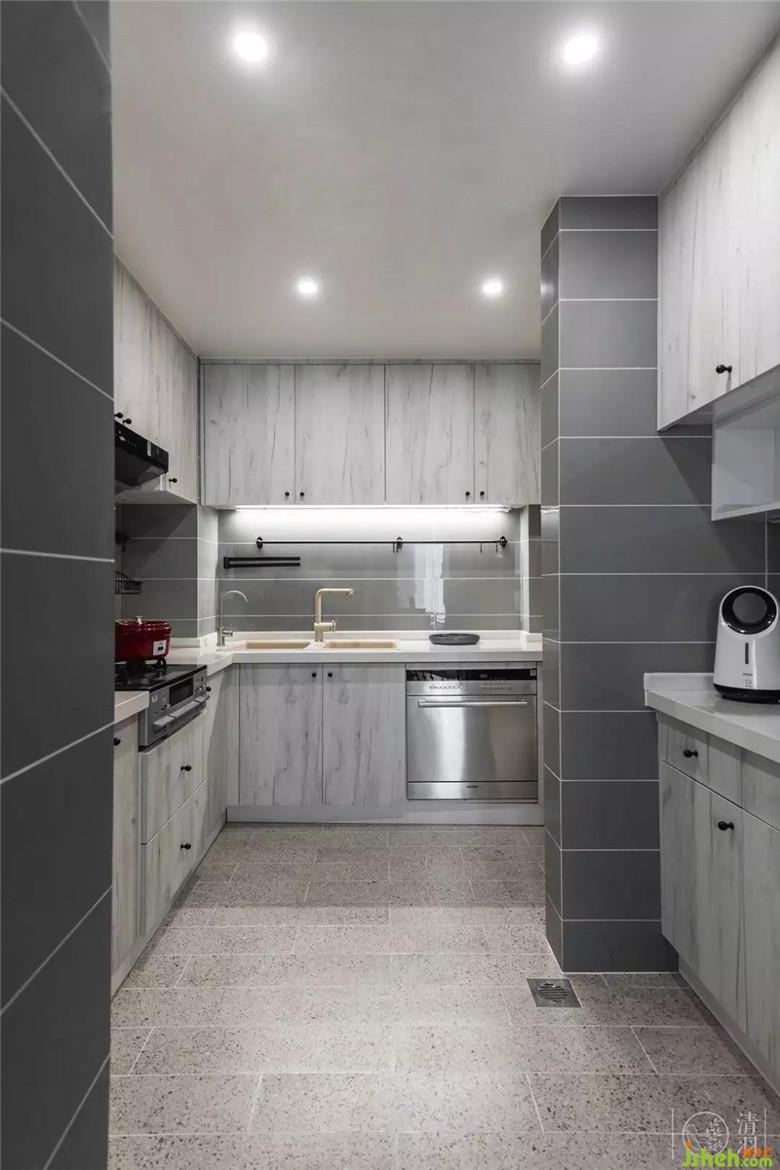 原始户型的厨房空间相对局促,我们通过户型优化扩充出来的空间增加了橱柜的长度,让厨房的使用更加的方便。