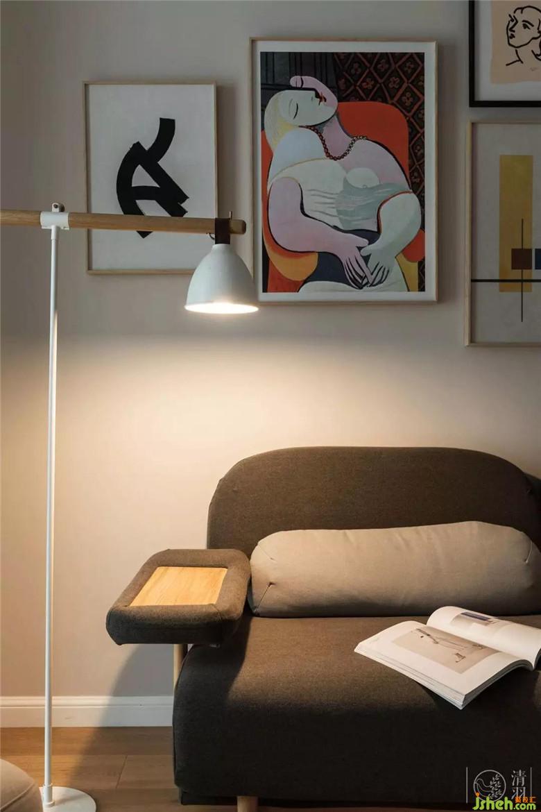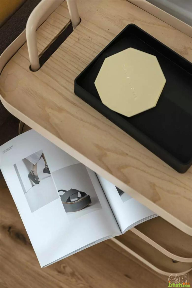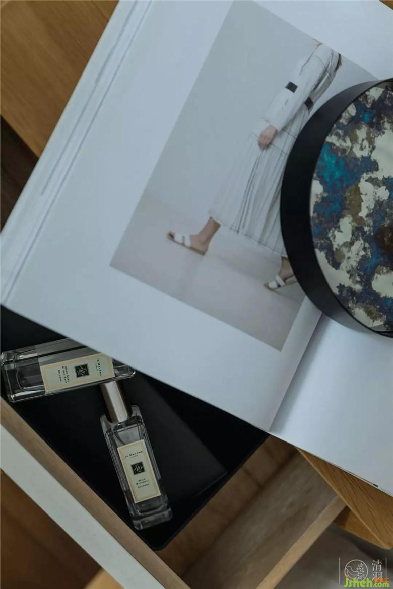 纯净感的主卧空间里用到了和一楼黑板漆一样的蓝色作为点缀。主卧和小阳台之间是主人看书阅读的书桌,书桌悬空让视觉感受更通透。