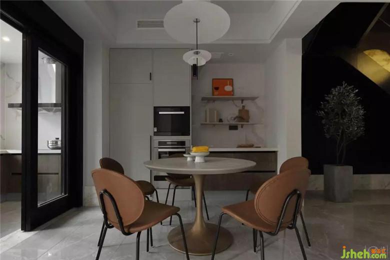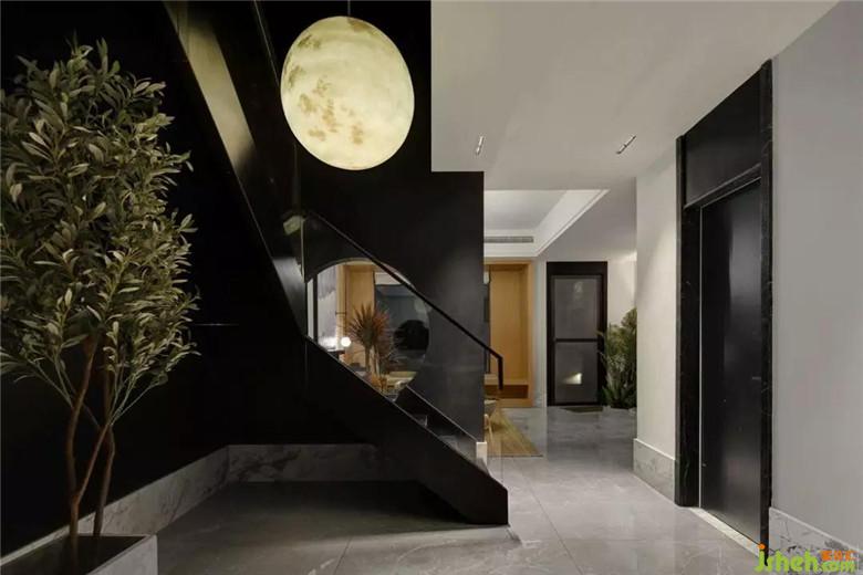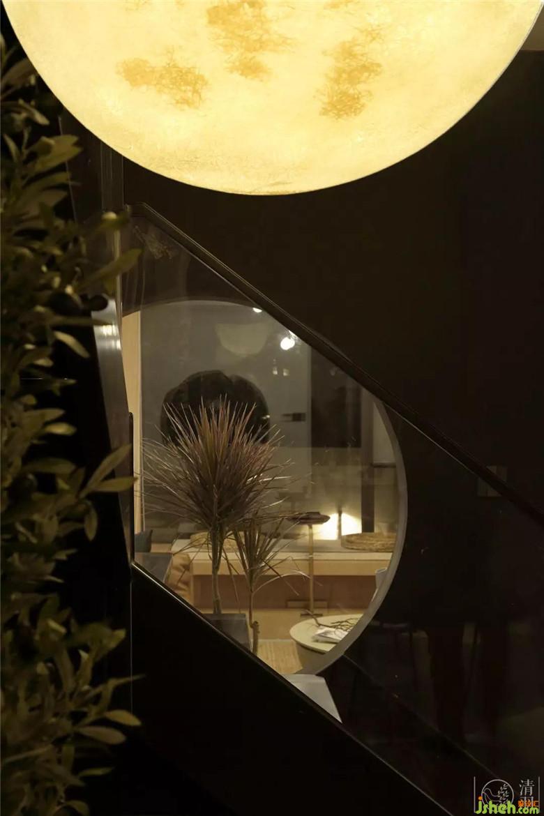 三层楼的小别墅里安装了地暖、中央空调、电梯,希望来到这里的人不需要被温度、楼梯所束缚,从而拥有更加舒适方便的体验。我们让三个卧室呈现出不同的空间表情,为每个卧室搭配了不同的色彩和摆设。楼梯间出现的“月亮”,寓意“海上升明月,天涯共此时”。配合背景圆形镂空的造型,我们希望带给所有来这里度假的人们"团圆"的感觉。移步换景,团圆的概念贯穿在整个空间。