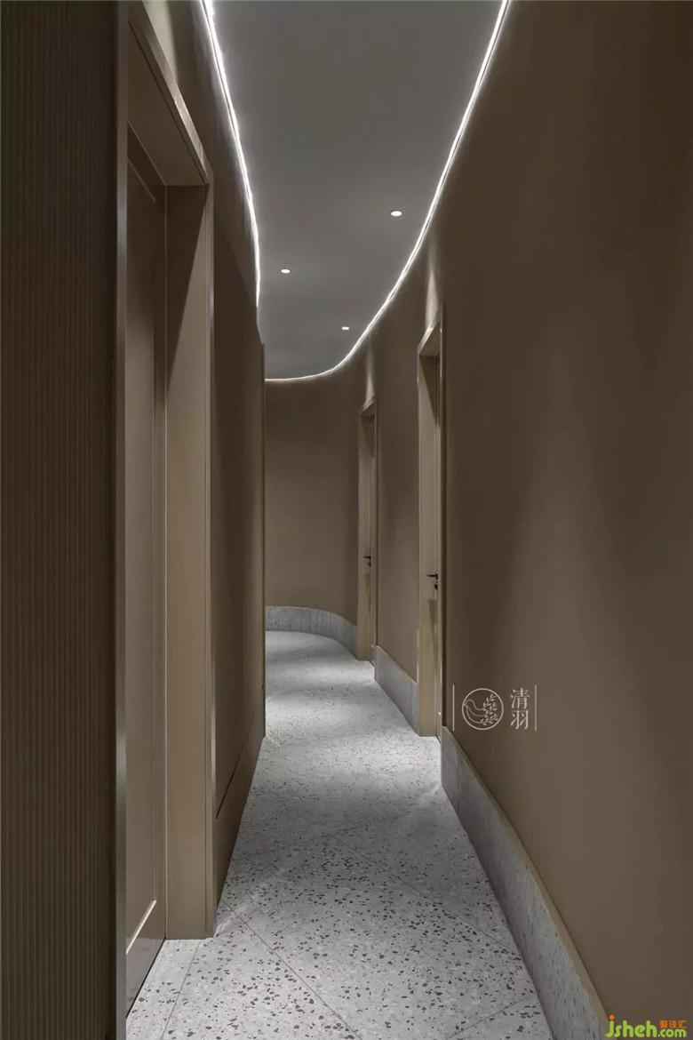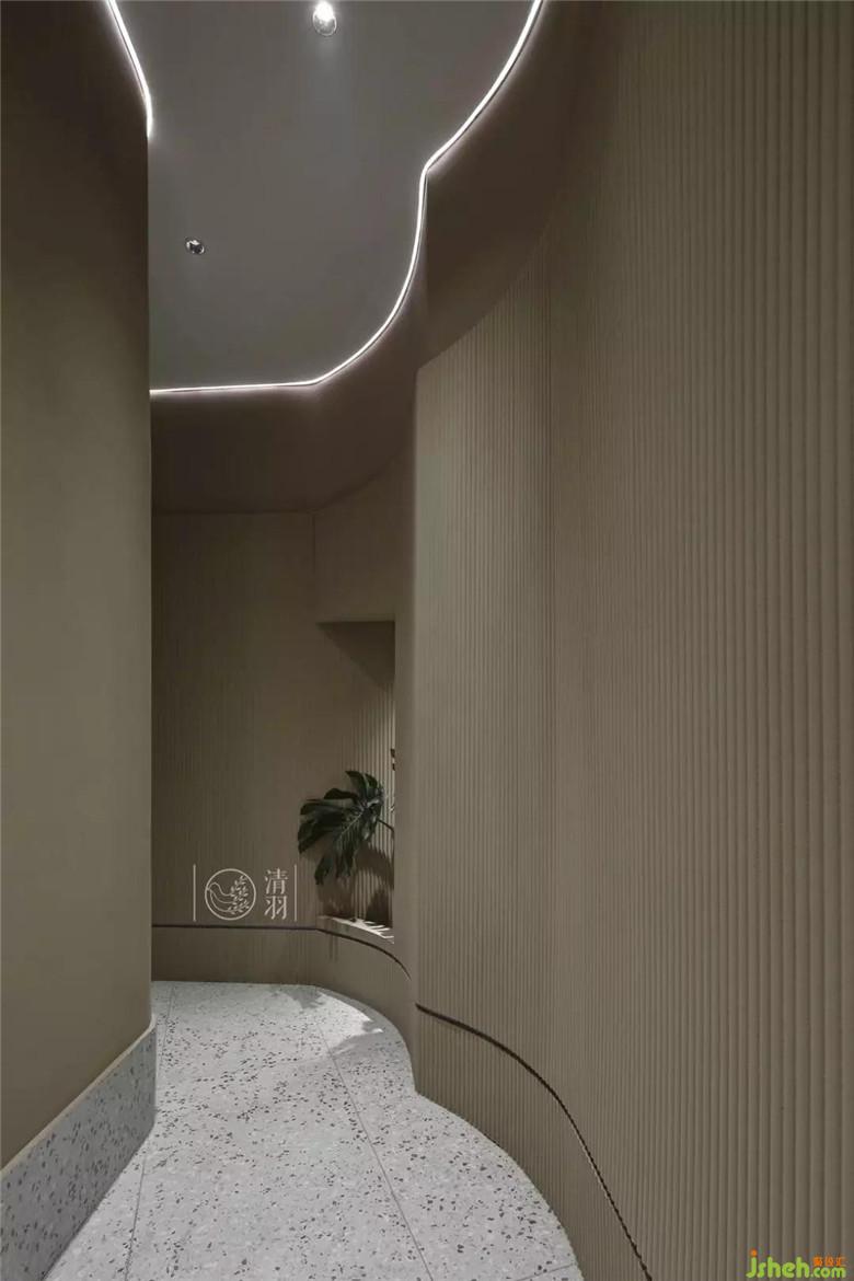 走廊的曲径通幽为美容美体区域带来安静的感觉和更好的私密性。