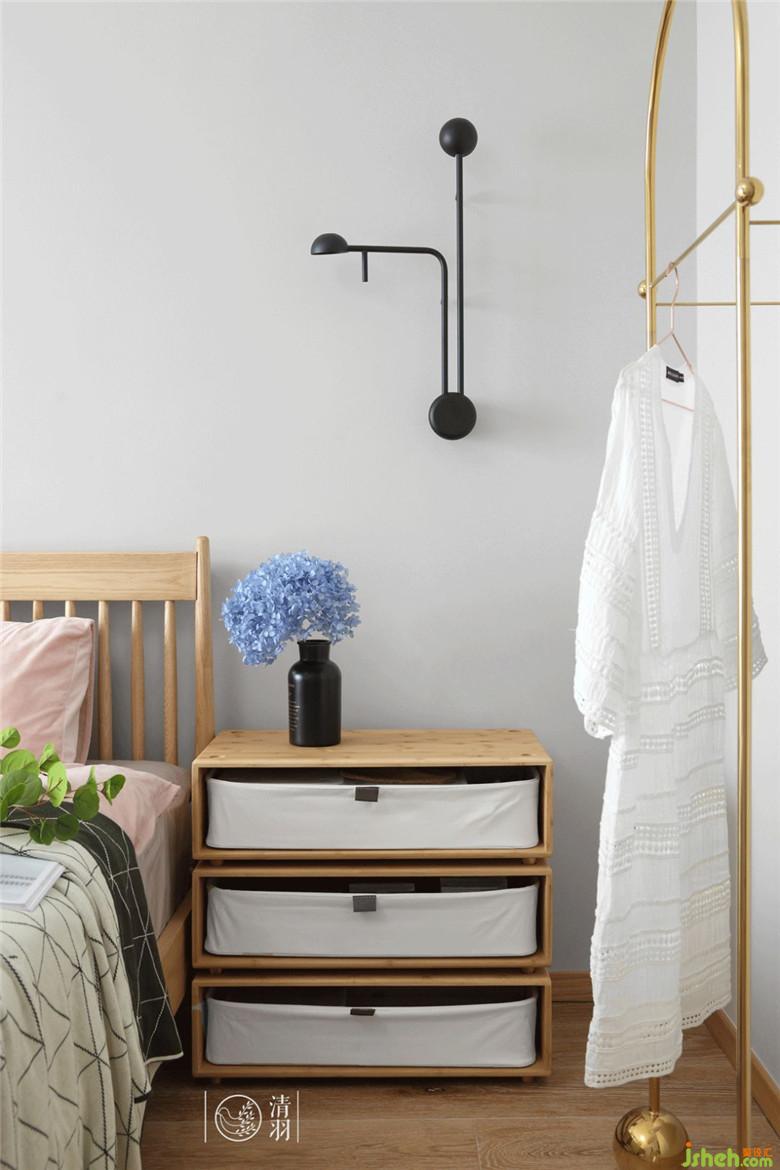 面积浅灰色调的墙面颜色,搭配原木色家具,氛围轻松自然,营造出一个舒适的休息空间。