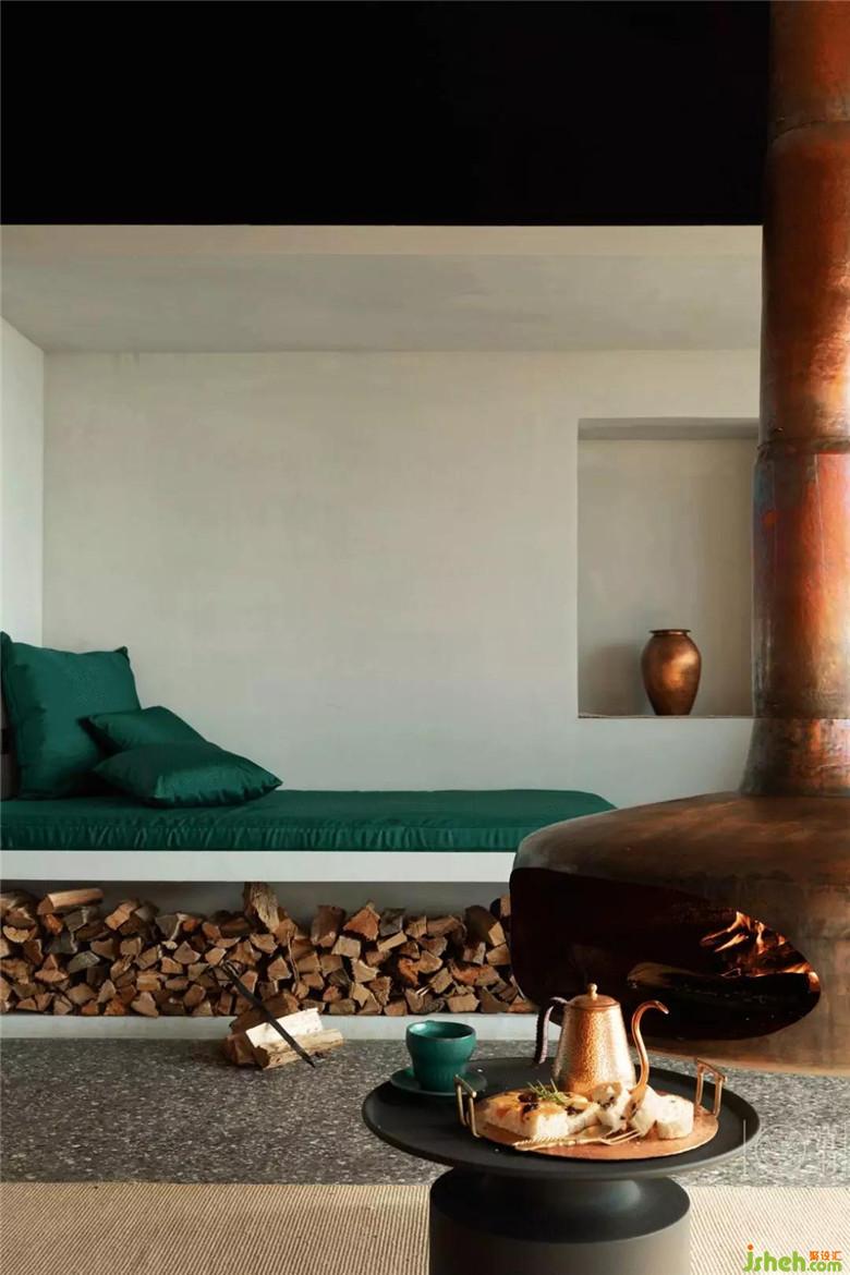 “大大的厨房,像水泥砌成的台面,铺着带年轮的实木板,灶台上放着彩色的玻璃碗、陶瓷锅,亚光黑钢和红棕色铜制金属原件点缀着黑色的墙面。”是多少人在平日里懒得折腾的梦想厨房?而它,就在这里。尽管一体的多功能灶台是淘来的展示样品(为了把成本省下来花在更值得的地方,当然它价格也不菲,使用感一流),尽管墙面由于施工方的局限,最后是由老板夫妇重新亲自收尾,但用下的心都一一呈现。