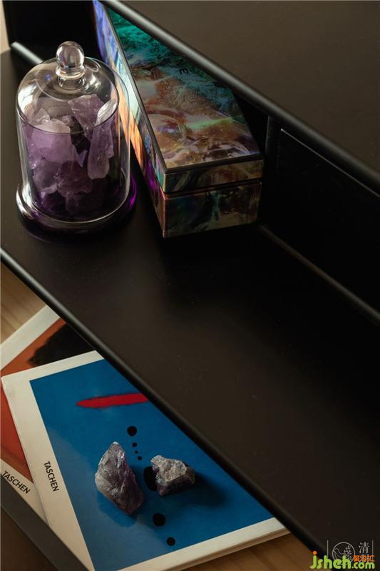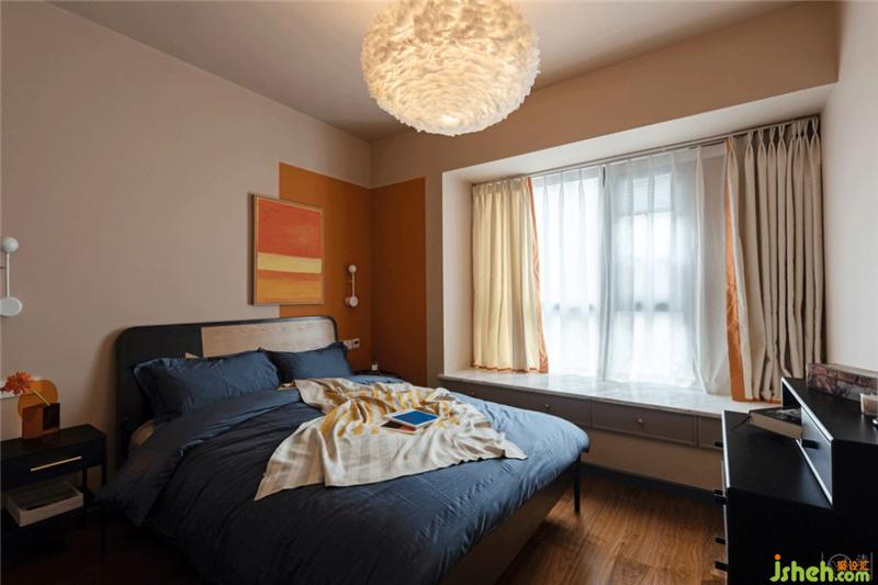 主卧不仅在衣柜上加强收纳的巧思,飘窗也设计了收纳空间,梳妆台也让它艺术的上了墙。利用每一处可以利用的空间,才能创造更舒适的生活。