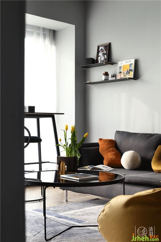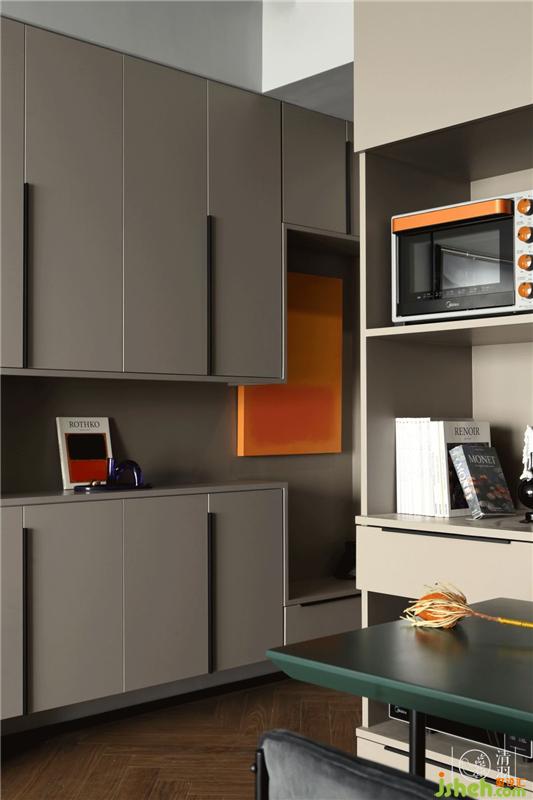 同时,大面积的灰色调,也柔和空间里原有的菱角、方正感,给人带来安稳、舒缓的感受。室内设计师