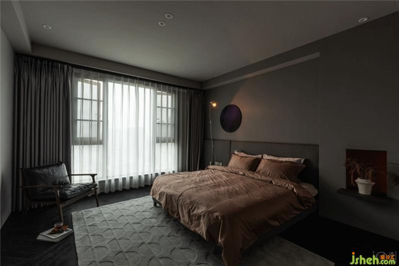 一组窗帘、一张床,一盏落地灯,一套颜色柔和的床品,是卧室最基础的配置,也差不多就是它的全部了。室内设计师