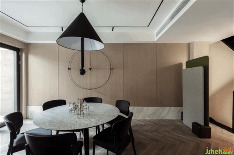 餐厅的后部是通往地下室的楼梯,我们用了两块梵几的隔断作为空间的分隔。