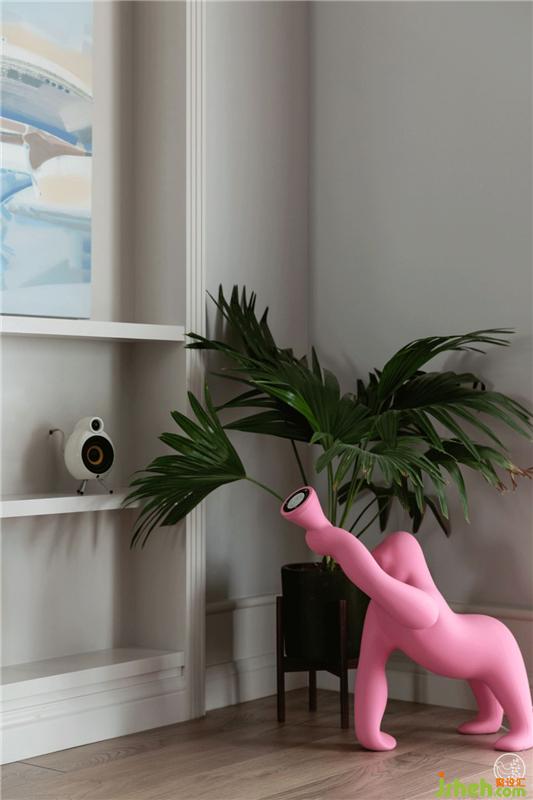 抽象水墨般的油画,春羽,精油香薰,粗粝质感的陶制花瓶,等了大半年才买到手的Normann玄关柜,特别的顶面光线……制造出仿佛水边夏夜般的闲适感。动静相宜,浓淡搭配,反而更显内涵。