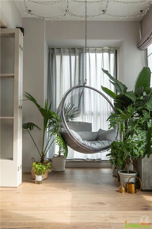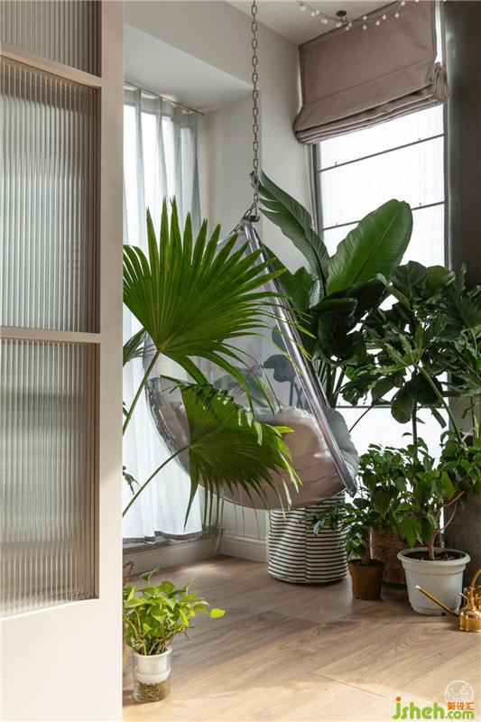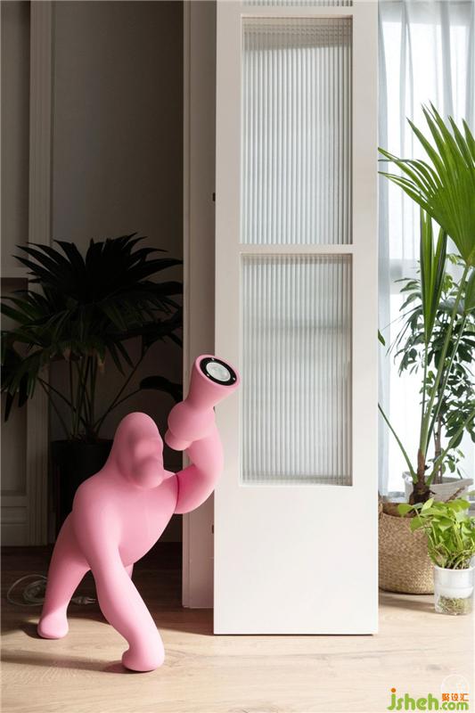 要说这个家最个性的装饰品,当属意大利Qeeboo猩猩落地灯了,颜色粉嫩,姿态可爱,它身后是最富自然气息的阳台。室内设计师