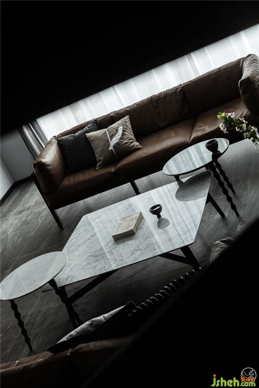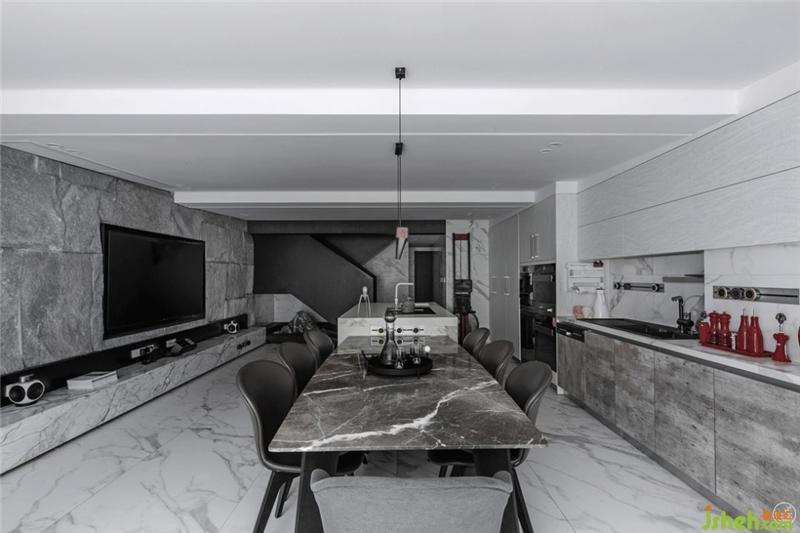 而线条柔和的BoConcept黑色餐椅则中和了石材带来的硬朗感。