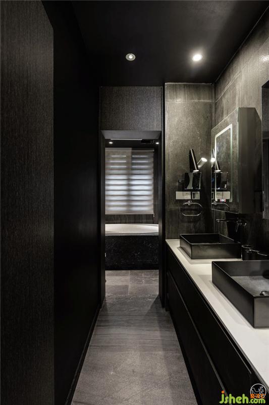主卫以黑色为基调,依然是以弱化空间本身的存在感,以鲜明的线条突出功能性。别墅装饰