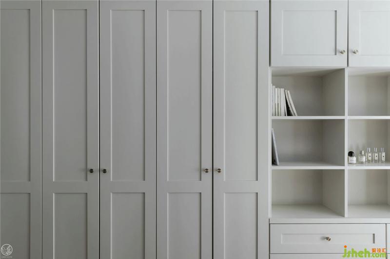 床对面的墙面体被用来做了极致的收纳空间,有虚有实,有开有合。室内设计师