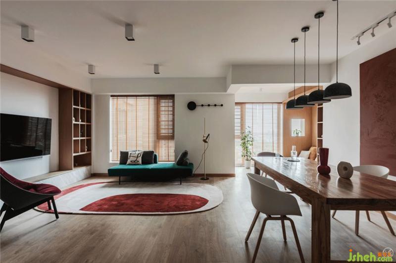 从结构上我们能看到在餐厅与休闲厅之间的顶面有一道横梁,我们敲掉它下面的墙,却没有对它做任何修饰,只是为了保留原始层高,最大限度的保证通透。装修设计
