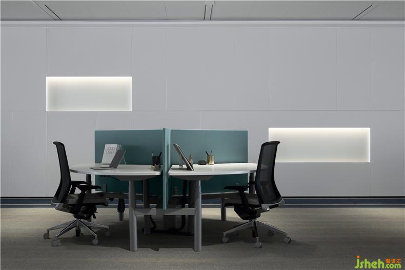 协作办公区被定义为“智慧型的办公舞台”。以隔板为界的两套办公桌椅,促进了员工之间的协作和互动。值得一提的是,这里选用了可升降的办公桌,让员工有权选择适合自己的办公方式