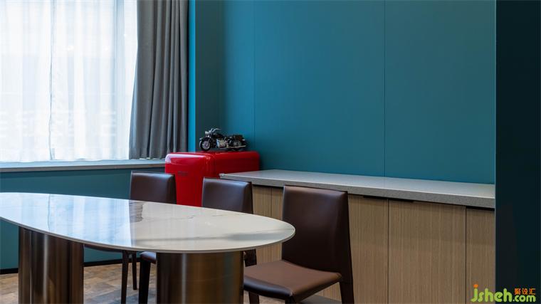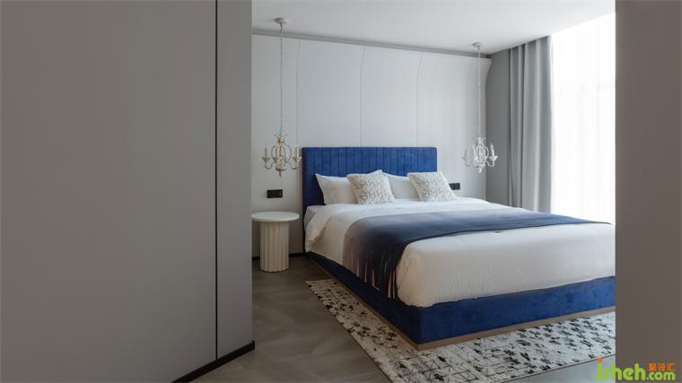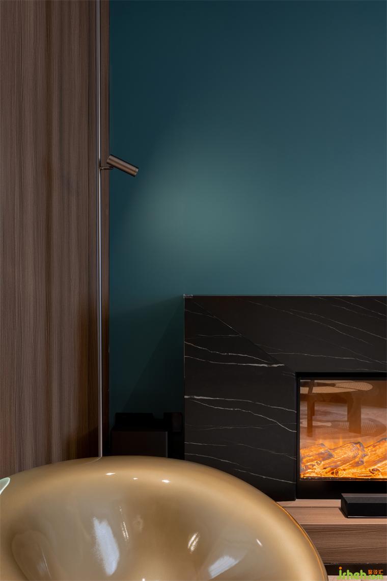 “沧浪,青色也。”沧浪作为空间基础色调,在厚重的蓝色之上,搭配些许的暗金,给空间渡上了一层岁月的厚重感。红蓝跳色的装饰品,酒店设计在灯光的投射下,映出清晰而柔和的图案阴影,让整体形成契合的状态。