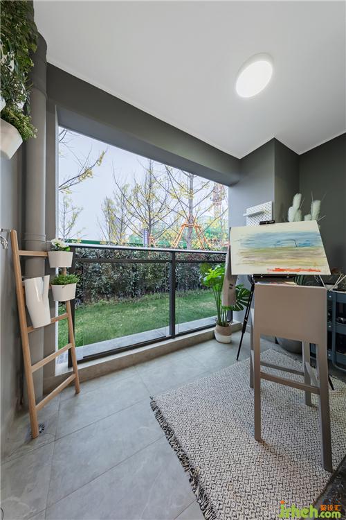 阳台景观视线开阔,简约灰色涂料彰显空间的高级感,贴合现代诗意理性栖所的人文特质,将艺术与精神投射到其中,居者的精神风貌仿佛清晰可见,一幅和美优雅的画像折射进丰腴的现实当中。