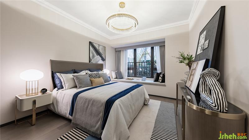主卧将人文格调和现代轻奢相结合,互取精华而为之,简约大气的空间格局完美地衬托出一景一物相结合后的完美效果。
