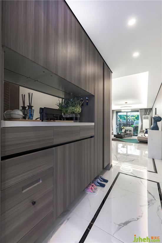 超大收纳容量玄关柜,镜面壁龛从视觉上拉宽空间的距离,柜门背板穿衣镜,鞋子按季按需分放,摆放整齐整洁收拿便捷;并设有换鞋凳,出门及回家换鞋时更具人性化,给我们的生活带来无微不至的关怀……