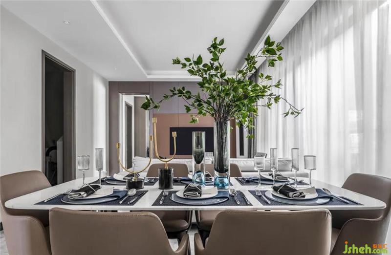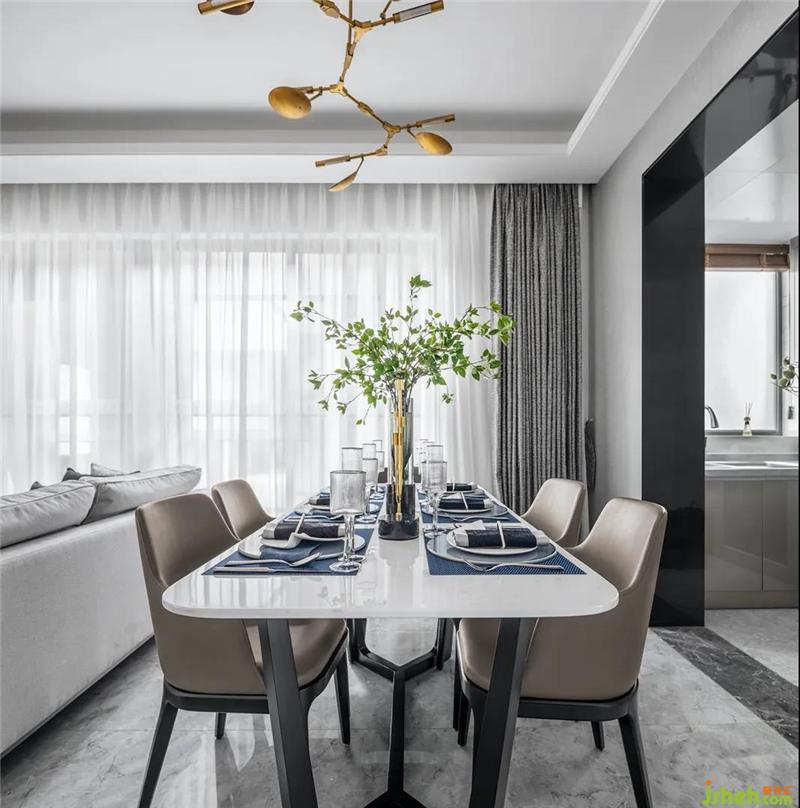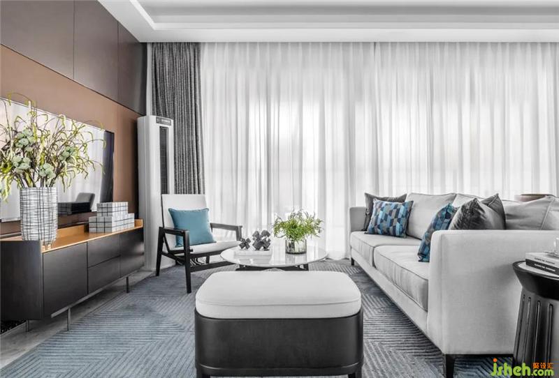 整體空間設計上,秉承簡約現代文化的理念,融入藝術時尚的設計元素,創造出壹個極具理性的空間,客厅空間造型較為簡潔,極力體現功能性與藝術性的有機結合,造出時尚沈穩的空間視感,運用簡潔的手法,將皮革、富有紋理的大理石與金屬以和諧的比例運用鎮居住空間中,展現出壹種精致缺不缺乏空間的調性,再結合色彩打造出壹個時尚趣味的生活空間。