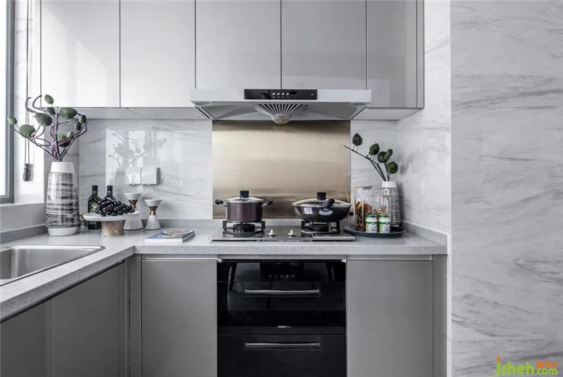 進入廚房就可以感受到鋪面而來家的味道,样板房设计炊具的煙火氣巧妙的融合在樸素的淺色系塊面的空間裏,幹凈又溫暖。此時,萬物靜待最熟悉不過家的味道新鮮出鍋。