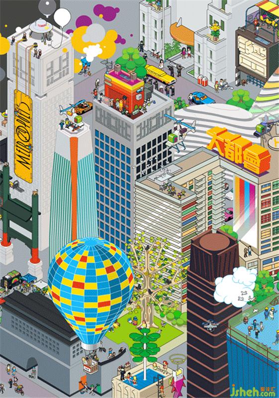 ■ 武子浩插画《北京大都会》,用像素点阵重现北京不同区域的都市风貌,灵感来源EBOY。