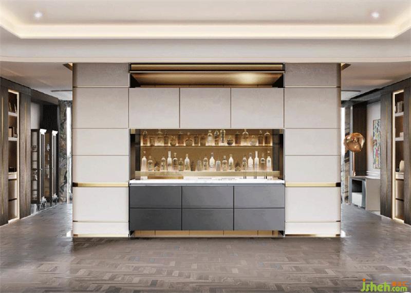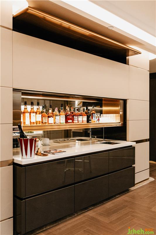 除此之外,本案在模块化设计中,亦充分延续了邱德光设计一直以来对「生活设计」的贯注。西厨区域隐藏了可升降的酒柜,使得该空间既能作为厨房也可变身为休闲社交的酒吧区,充分体现这个时代的「玩家」们热爱社交的生活情致。